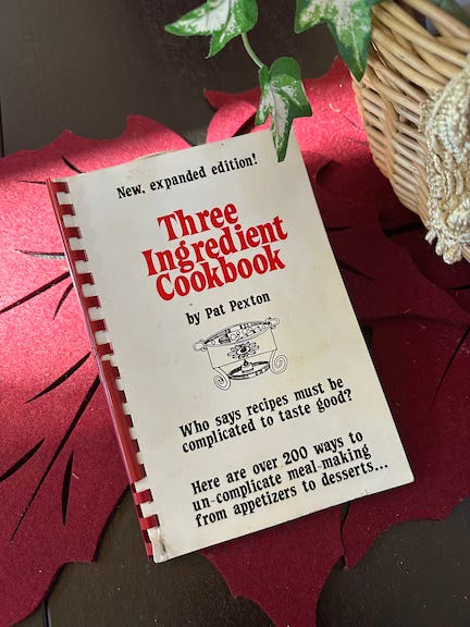 I especially loved the recipes that were shortcuts - using the fewest ingredients. I have passed down those now ragged treasures to my youngers but I still have one titled Three Ingredients Recipes.