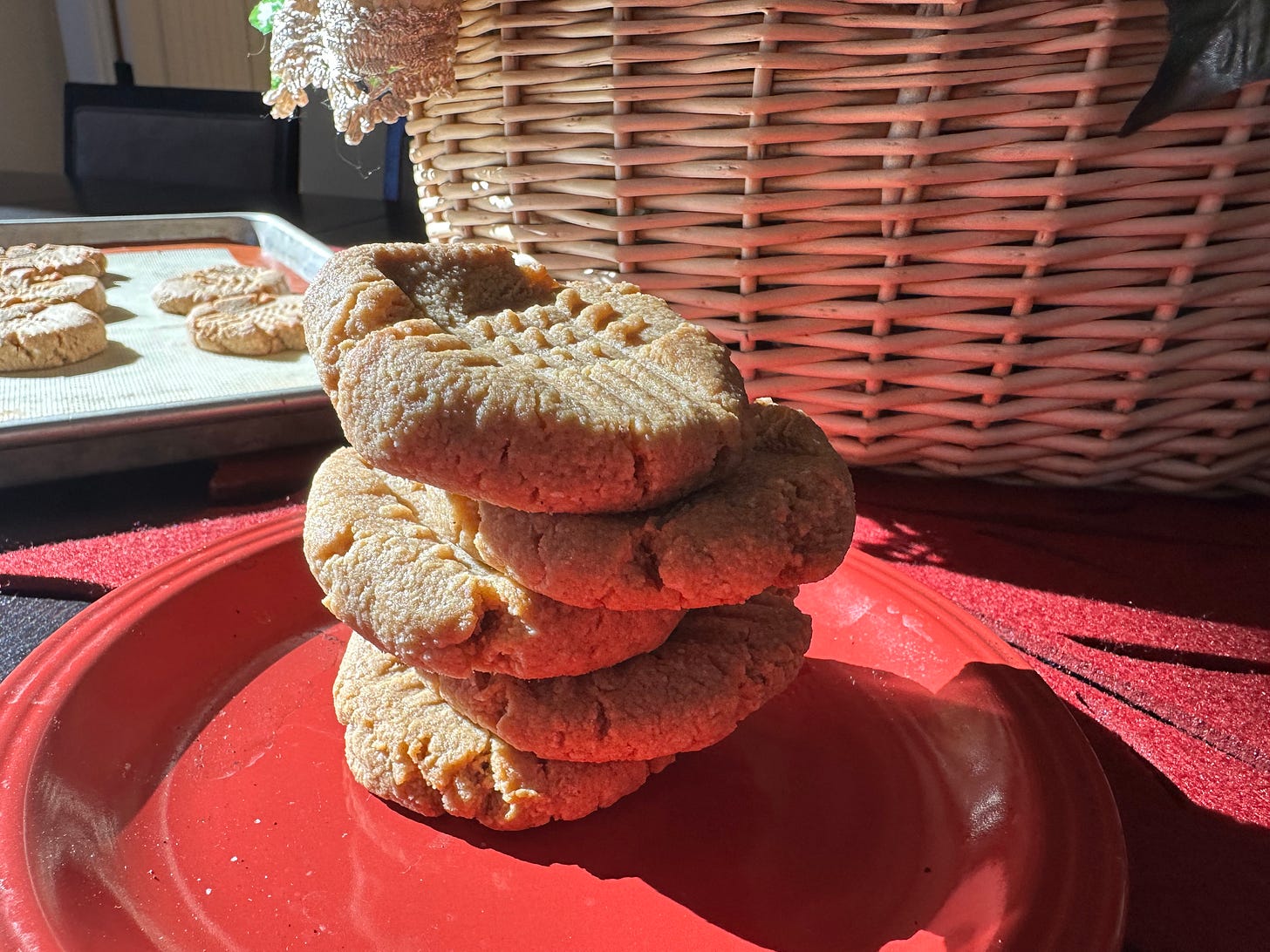 Mix into a stiff ball, divide into 12 balls, squish down with a fork, bake 350˚ for 11 minutes, remove and cool.