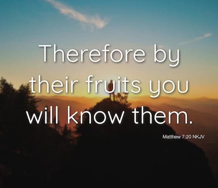Matthew 7:16 "You will know them by their fruits. Grapes are not gathered from thorn bushes nor figs from thistles, are they?"